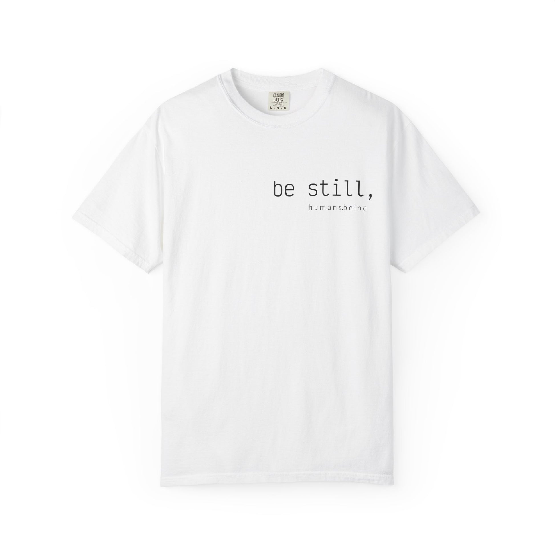 The Be Still Tee was created as a gentle invitation to slow down, breathe, and remember what matters. In a culture that celebrates constant movement and productivity, this piece is meant to hold space for stillness.